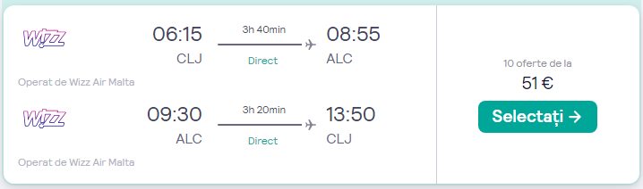 - zbor: Cluj – Alicante, 51 euro/pers, dus-intors, toate taxele incluse+bagaj de mana mic