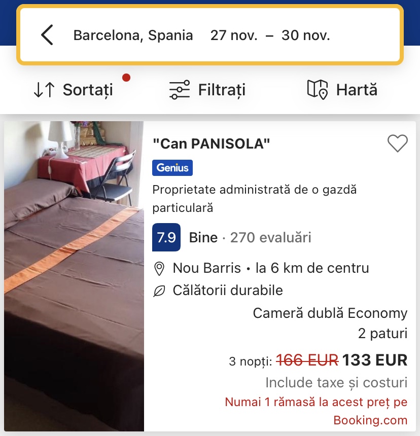 - cazare opt. 2: BCN Urbaness Hotels Bonavista, 256 euro/camera dubla, 128 euro/pers, mic dejun inclus