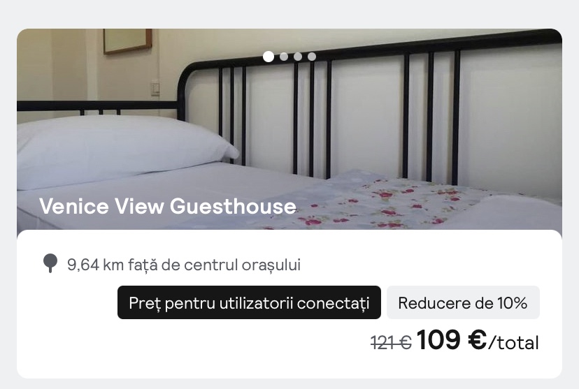 - cazare opt. 1: Venice View Guesthouse, 109 euro/camera dubla, 54.5 euro/pers