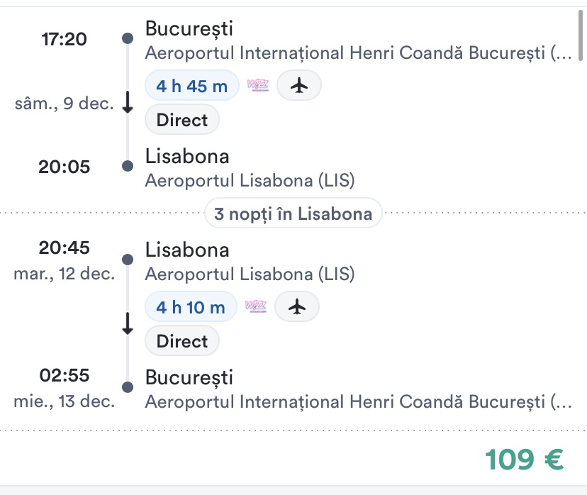 - zbor: Bucuresti – Lisabona, 109 euro/pers, dus-intors, toate taxele incluse+bagaj de mana mic
