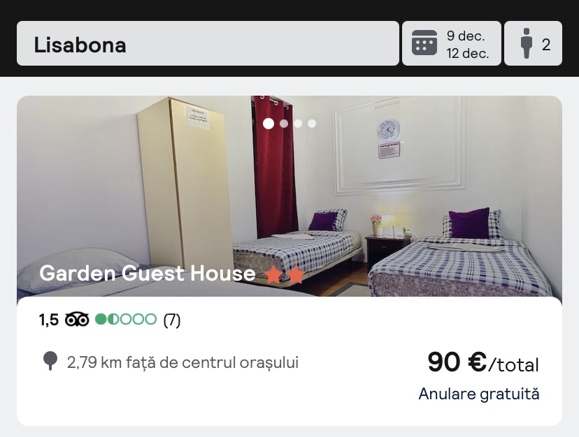 - cazare opt. 1: Garden Guest House, 90 euro/camera dubla, 45 euro/pers