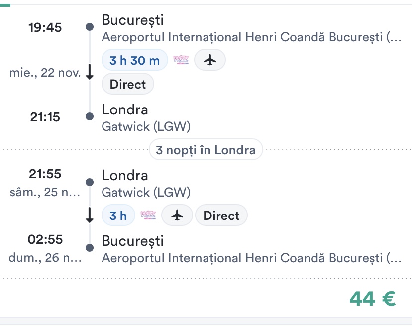 - zbor: Bucuresti – Londra, 44 euro/pers, dus-intors, toate taxele incluse+bagaj de mana mic