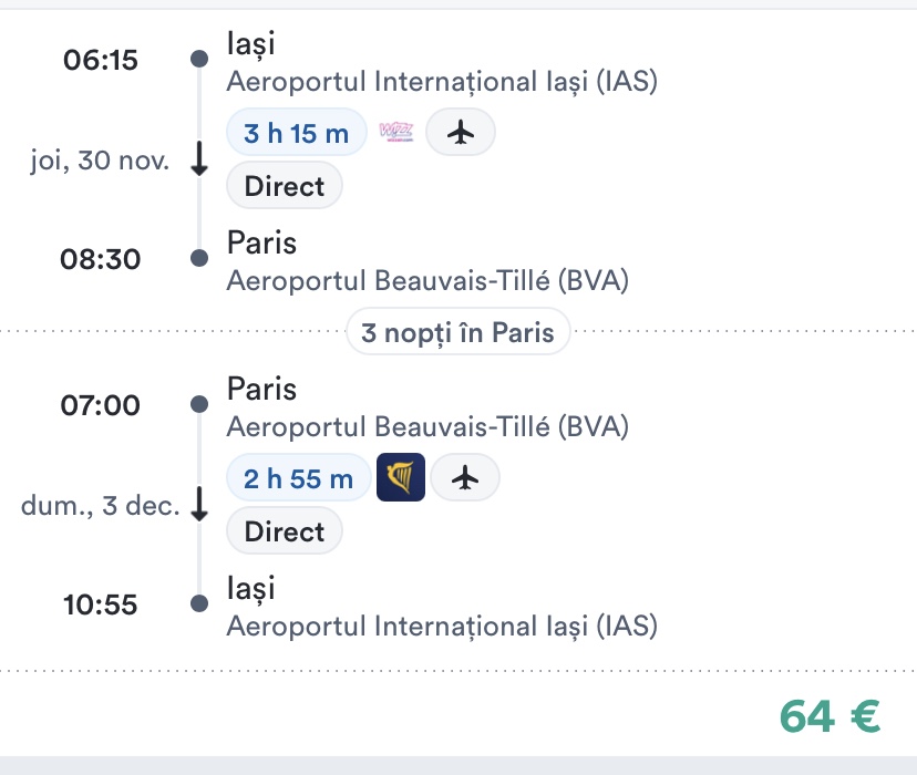 Mini-vacanta de 1 Decembrie in Pairs la un super pret. Pentru zbor direct dus-intors si cazare 3 nopti in apartament bine cotat, platesti doar 155 euro/persoana. Plecari disponibile din Iasi, Cluj si Bucuresti.