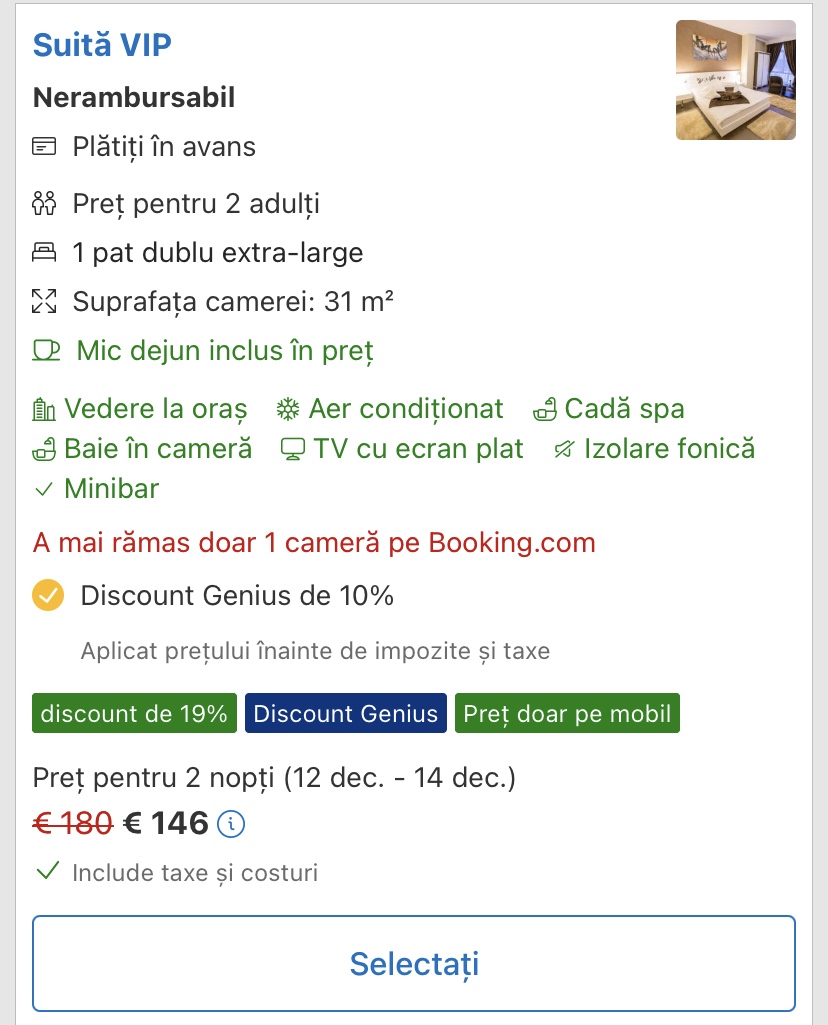 Targul de Craciun din Craiova, hotel superb cu jacuzzi in camera, 36 euro/persoana/noapte cu mic dejun inclus, disponibil in luna Decembrie din acest an.