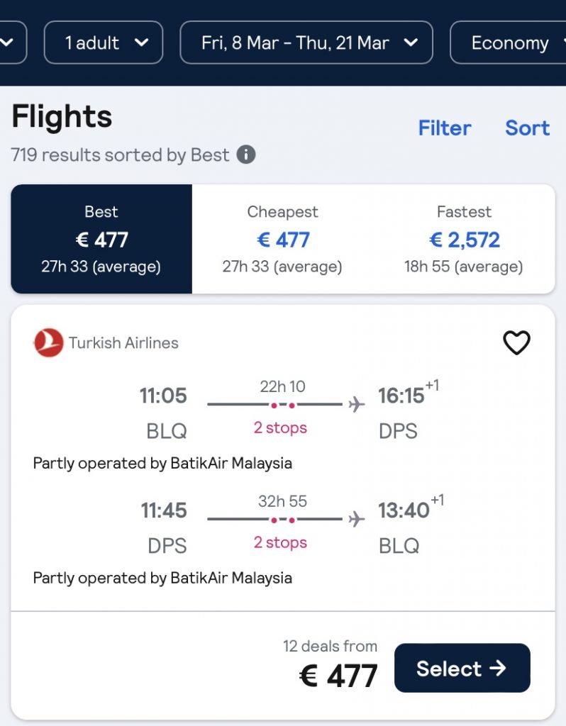 Zboruri Turkish Airlines foarte ieftine din Bologna spre Bali, 477 euro/persoana dus-intors cu toate taxele si bagaj inclus. Vezi in articol perioadele disponibile.