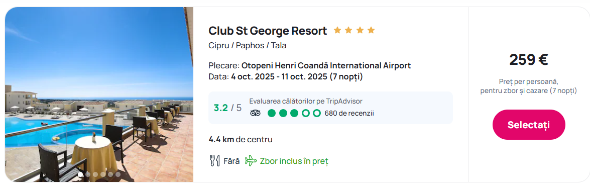 Vacanta in Cipru, in perioada vacantei de toamna, 259 euro/persoana. Pretul include zborul direct dus-intors si cazarea 7 nopti. Zboruri directe disponibile din Bucuresti, Cluj si Iasi. Vezi toate detaliile mai jos, in articol.