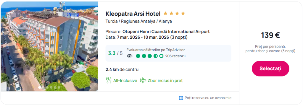 Vezi aici si alte oferte cu plecare din Bucuresti.