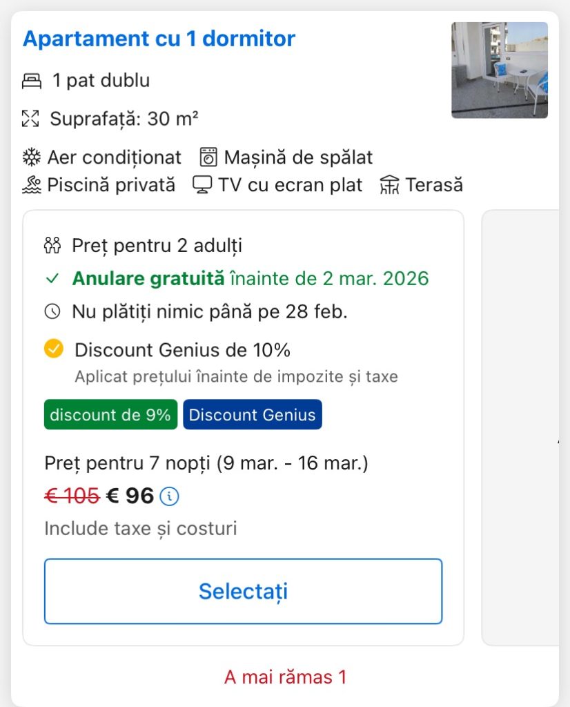 Apartament situat într-un complex privat cu acces gratuit la piscină și rating foarte bun la doar 7 euro/persoana/noapte.