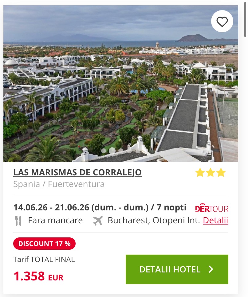 Dacă visezi la o vacanță exotică în Europa, Fuerteventura este alegerea perfectă. Sejurul la Las Marismas de Corralejo oferă un raport excelent calitate–preț, într-o perioadă ideală pentru plajă și explorare.
