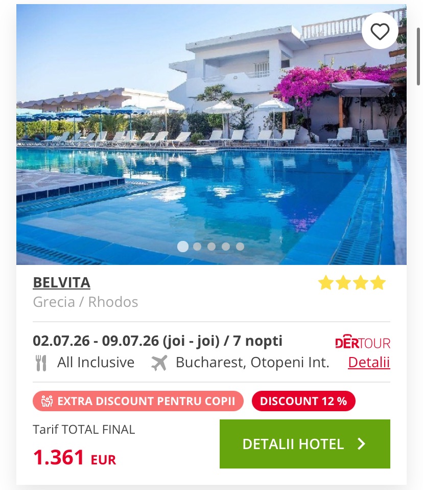 Tarif total final: 1.361 € (2 adulți + 1 copil)